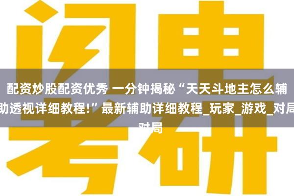 配资炒股配资优秀 一分钟揭秘“天天斗地主怎么辅助透视详细教程!”最新辅助详细教程_玩家_游戏_对局