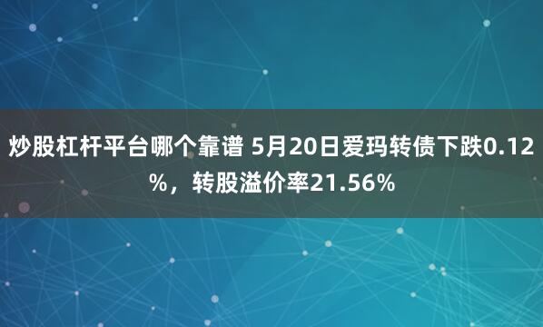 炒股杠杆平台哪个靠谱 5月20日爱玛转债下跌0.12%,转股溢价率21.56%