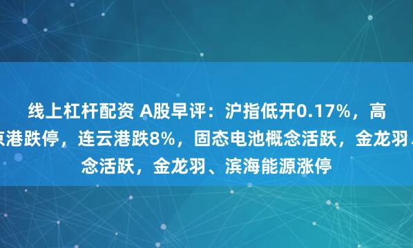 线上杠杆配资 A股早评:沪指低开0.17%,高位股调整,南京港跌停,连云港跌8%,固态电池概念活跃,金龙羽、滨海能源涨停