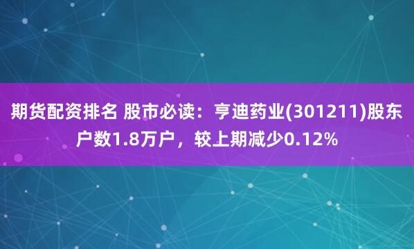 期货配资排名 股市必读:亨迪药业(301211)股东户数1.8万户,较上期减少0.12%